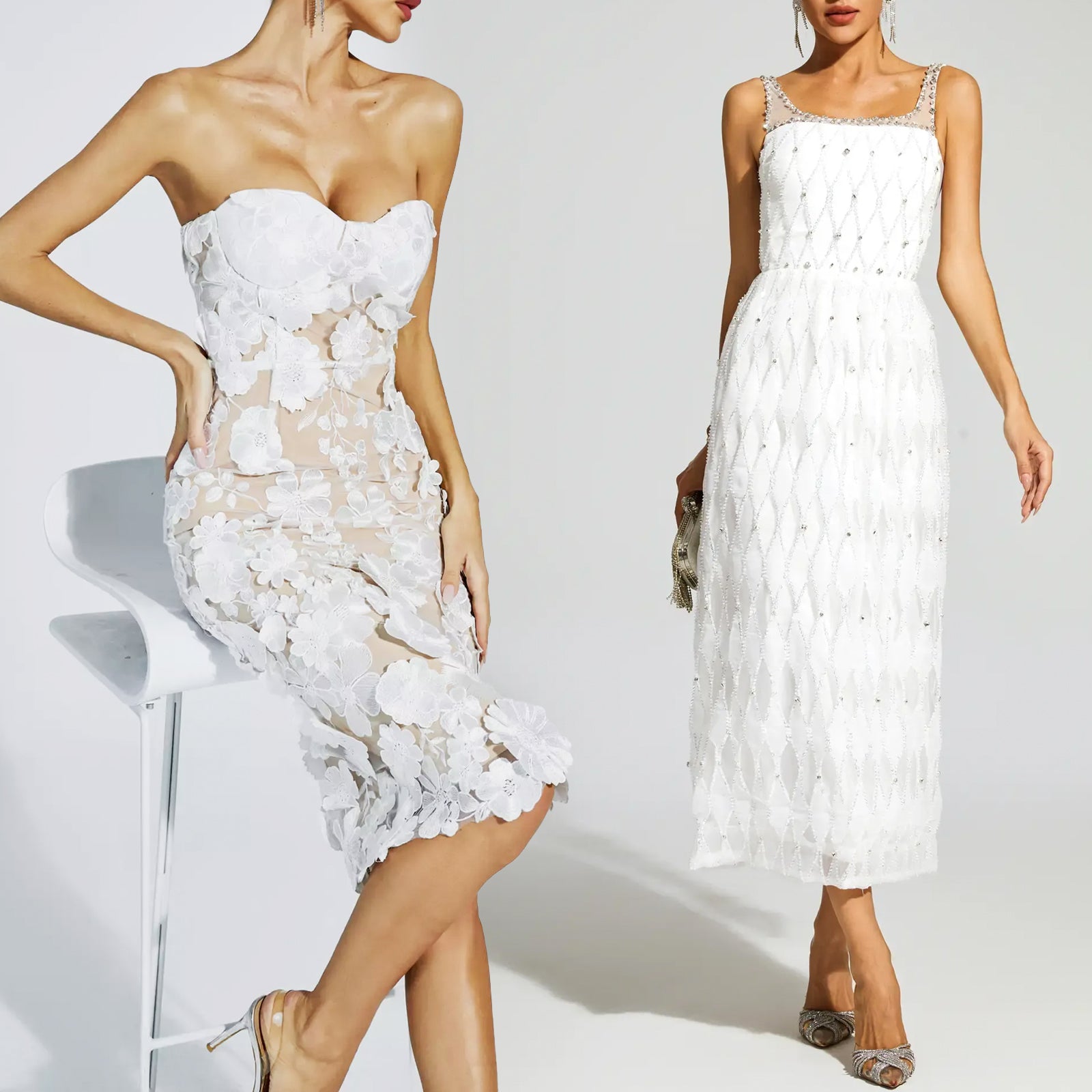 Melany Witte Jurk met Parels
