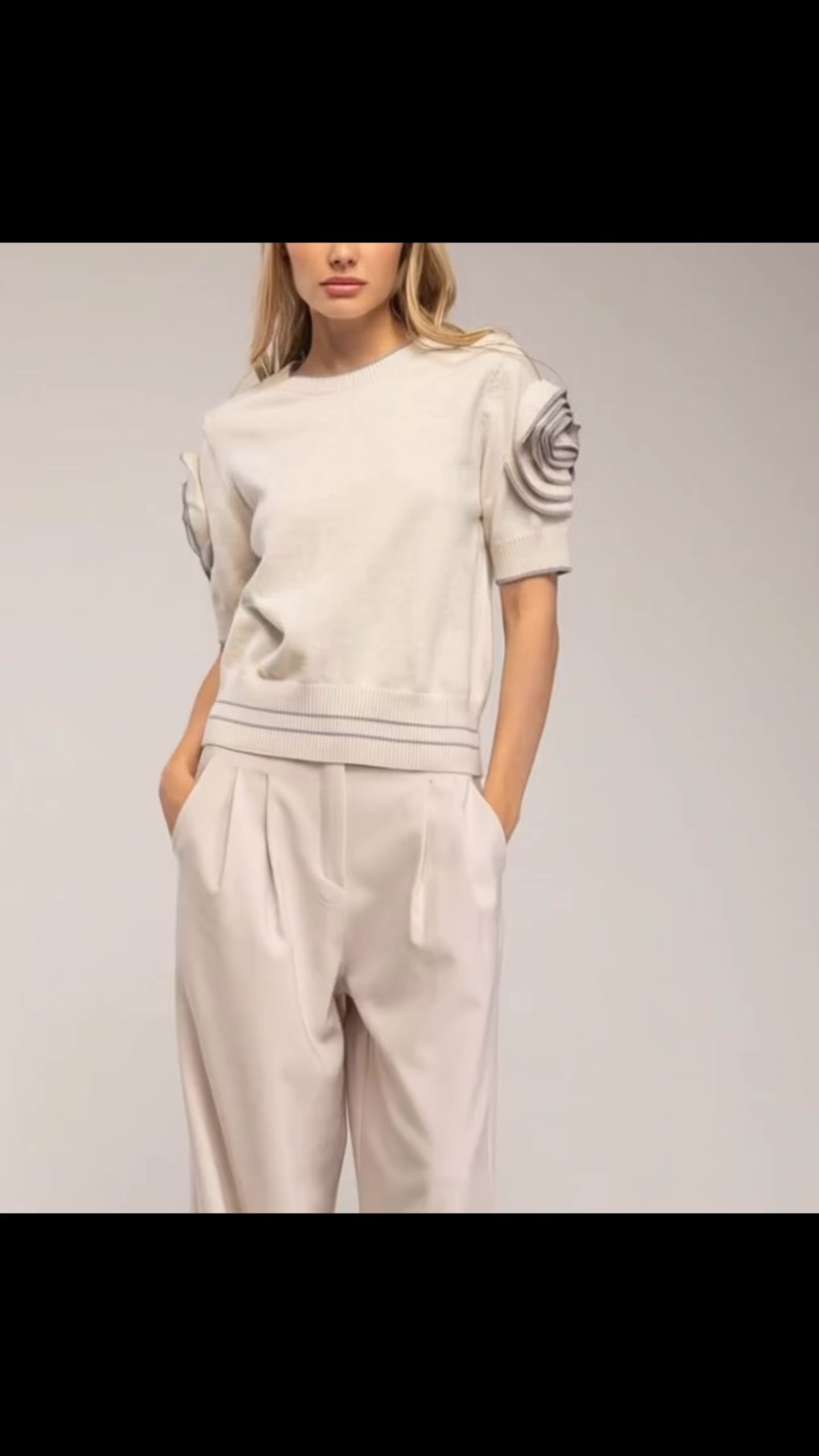 De Florisse top straalt vrouwelijkheid en ingetogen elegantie uit. De bloemenapplicaties op de mouwen en de subtiele contrasterende randen geven het een moderne, romantische uitstraling. De zachte stof en comfortabele pasvorm maken het perfect voor zowel overdag als ’s avonds.